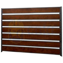 Заборы «Ранчо» изготавливаются на заказ с возможностью выбора материала отделки, цвета, расстояния между панелями и ширины панелей. Кроме того, вы можете выбрать вертикальное расположение панелей, вместо горизонтального!